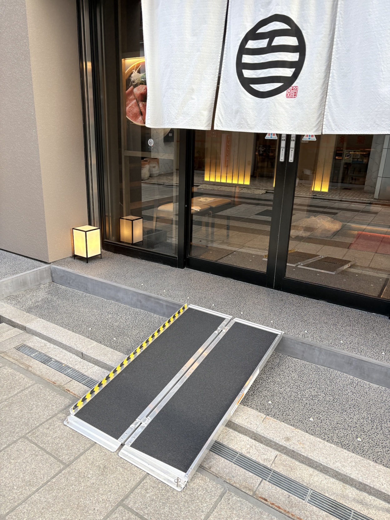 * 「すき焼きと牛まぶし ももしき はなれ」の入り口に段差を解消するスロープを設置